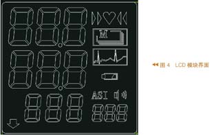 如图4、5所示,为了使用户更为方便、简单地使用本系统,采用LCD显示。松下的MN101EF32D芯片内置了LCD驱动模块,可以直接驱动LCD。先初始化LCD方式控制寄存器1(LCDMD),它是8位寄存器,用来指定LCD时钟、LCD显示的ON/OFF、显示占空比等。