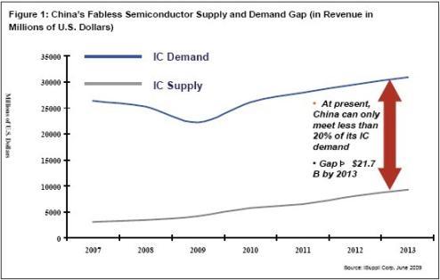 图1所示为iSuppli公司对于中国本土芯片需求与供应的缺口预测。