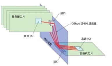 据了解,在当前服务器厂商提供的刀片服务器系统中,服务器的基本组件如 CPU 和内存首先被安装在服务器刀片的裸电路板上,然后装入由多个服务器刀片组成的服务器系统中。这是目前一种流行的 IT 系统设计方法,其目的是减少空间需求和提高运行效率。近年来,随着“绿色 IT”风的盛行,节能增效、高密度 IT 设备的需求急剧增长。此外,市场对于担当服务器刀片间数据传输的电路板(交换刀片)收发电路的高密度、低功耗和高性能的要求也日益增多。因此,Fujitsu(富士通)为进一步提升刀片服务器的高性能,一系列新的技术进入研发范畴:如支持 10 Gps 高速传输的中间背板技术(一种连接多个服务器刀片的通信电路板)和多通道传输加速技术等(图 1)。