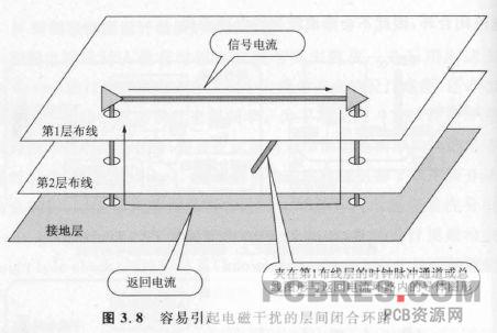 无论是在信号通路的导体图形中,还是在电源通路的导体图形中,都可能有电磁干扰电流流动。当有电磁干扰电流叠加到信号电流或者电源供电电流上时,就应当边设计边检查是否构成了最小的闭合内侧环路。