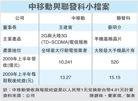9月1日消息,据台湾媒体报道,中国移动将与联发科在大陆合资成立新公司,生产TD-SCDMA关键零部件。预计一旦TD市场做大,中国移动所采购的3G和2G手机,都将以联发科芯片为主要来源。